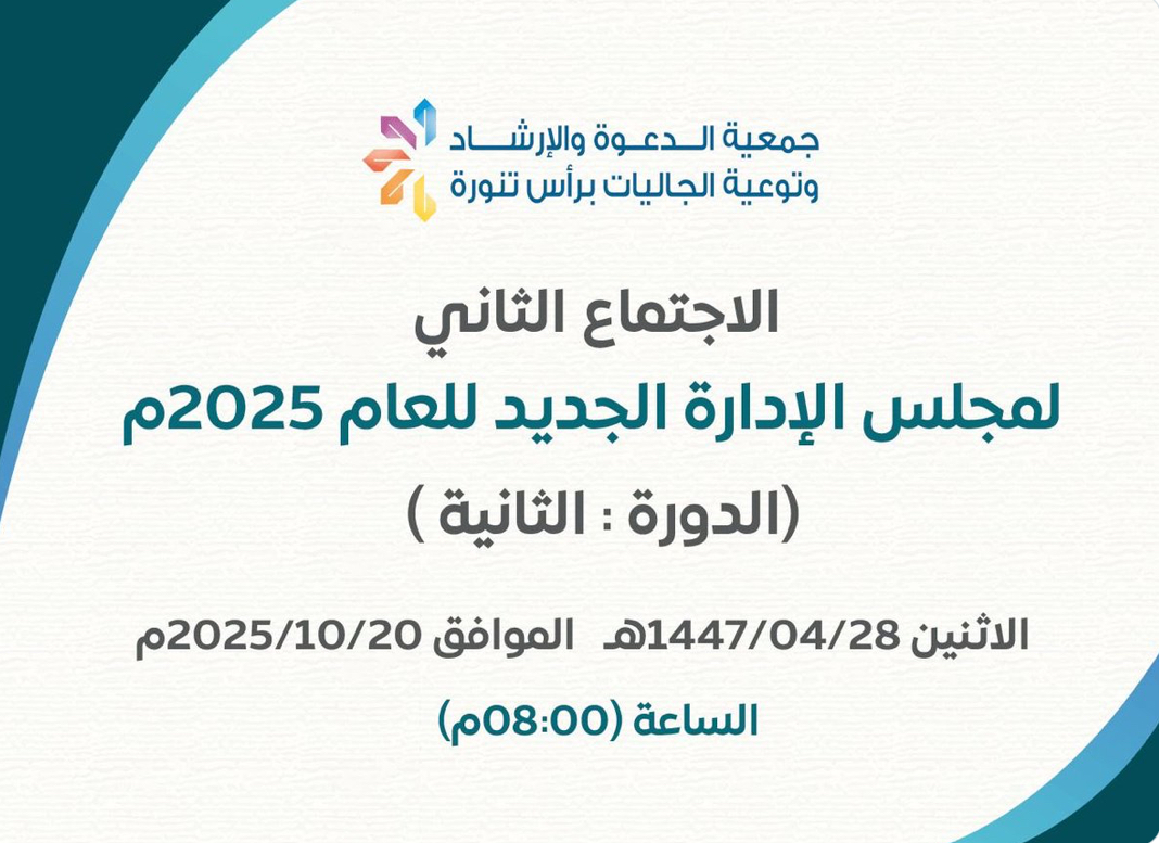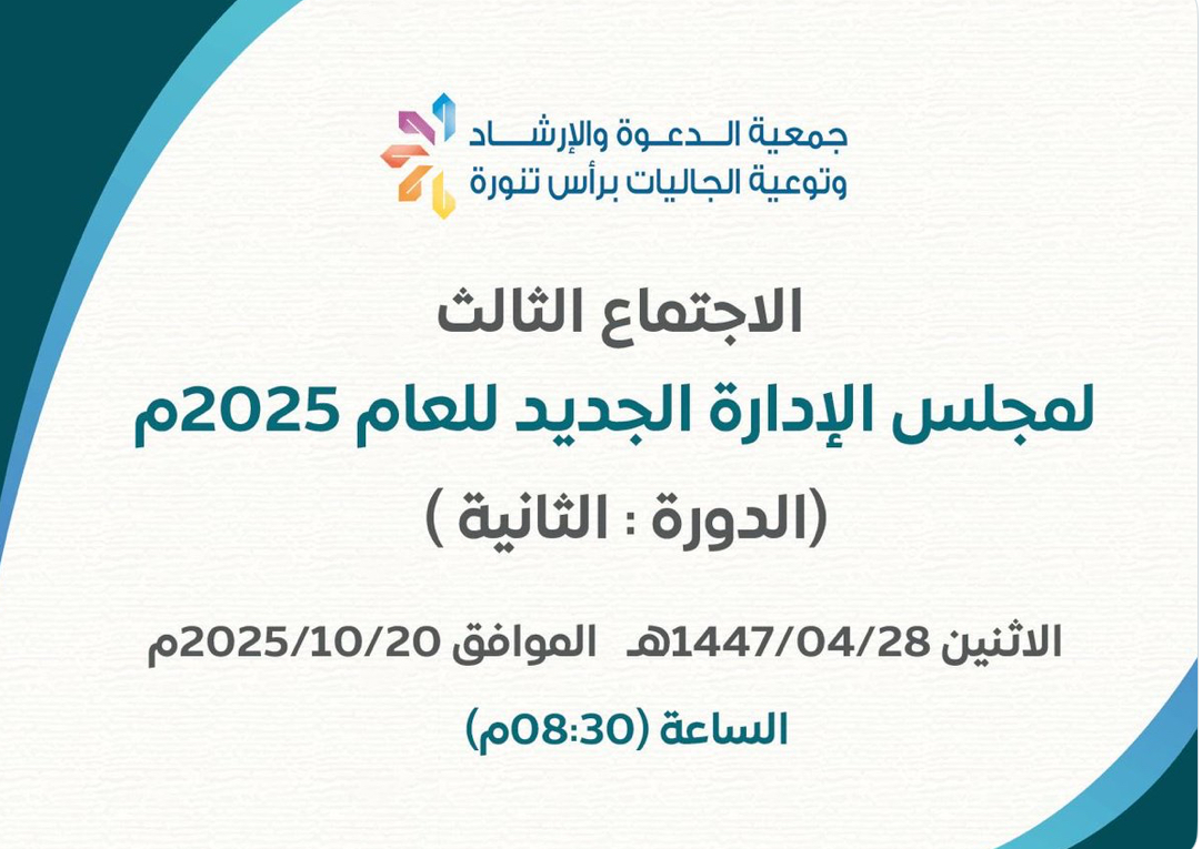 عُقد الاجتماع الثالث لمجلس إدارة جمعية الدعوة والإرشاد وتوعية الجاليات برأس تنورة ...